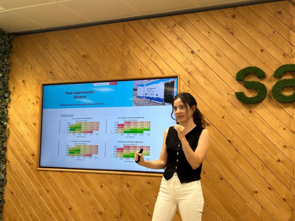 El pasado 22 de julio se celebró un workshop interno en las oficinas centrales de Sacyr Agua, en Madrid, donde se expusieron los resultados finales obtenidos durante la experimentación y los primeros detalles financieros del proyecto. Al evento acudió el directo general de Sacyr Agua, la responsable de Innovación, Sostenibilidad y Estrategia, jefes de plantas desaladoras y depuradoras, el responsable del área técnica, el delegado de producción nacional y demás profesionales del sector.